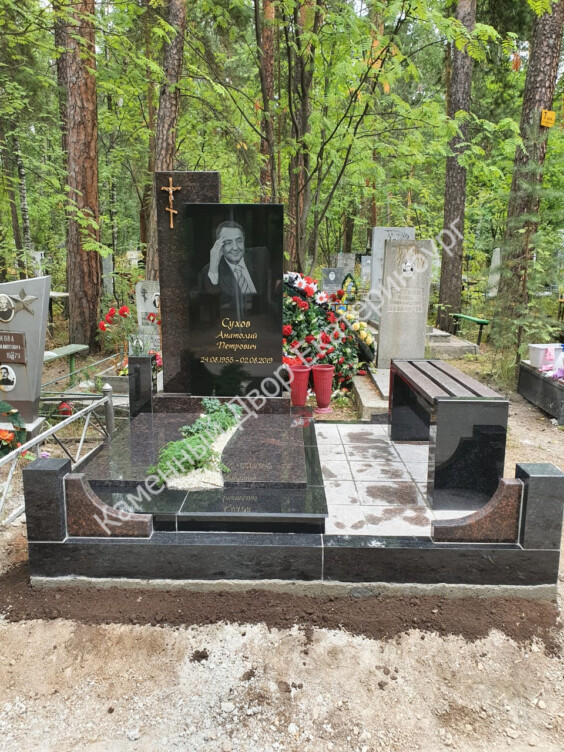 Памятник из Дымовского коричневого гранита , из Габбро черного гранита